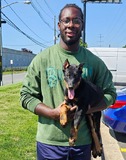 Aslan traveled quite a bit in his first 10 weeks! He went from New Hampshire to Kentucky, then back to New Hampshire. He then went down to Maryland, where he met Chris, the proud puppy dad who is holding his new boy for the first time in this photo on the left! Asland lived in Virginia for the next 8 months, and now he is moving to Alabama with his dad. Roll Tide!